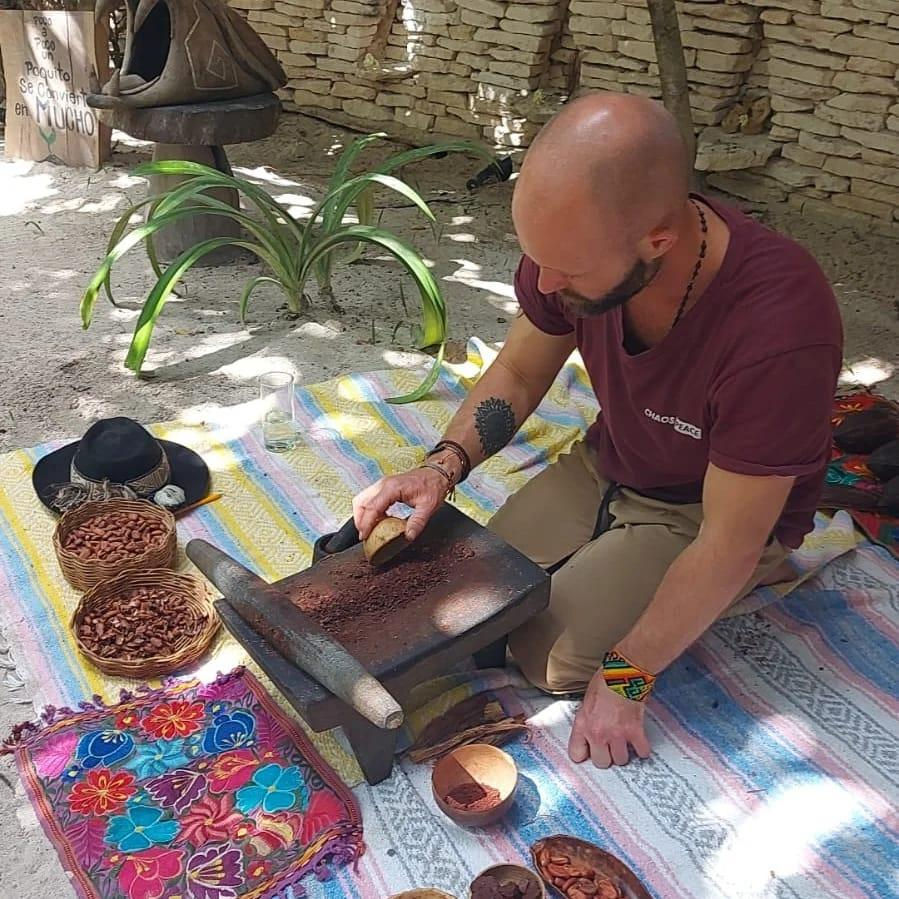 Bei diesem Workshop wird Mike einen praxisorientierten Kurs anbieten, in dem die Teilnehmer*innen in die traditionelle Art der Kakaozubereitung nach Maya-Weise eintauchen können. Basierend auf seiner Zeit in Mexiko führt Mike alle durch den gesamten Prozess: vom Schälen der Kakaobohnen bis hin zum Mahlen auf einem traditionellen Metate-Stein. Gemeinsam verwandelt ihr die Bohnen in ein reichhaltiges, zeremonielles Getränk – perfekt für Rituale oder achtsamen täglichen Gebrauch.